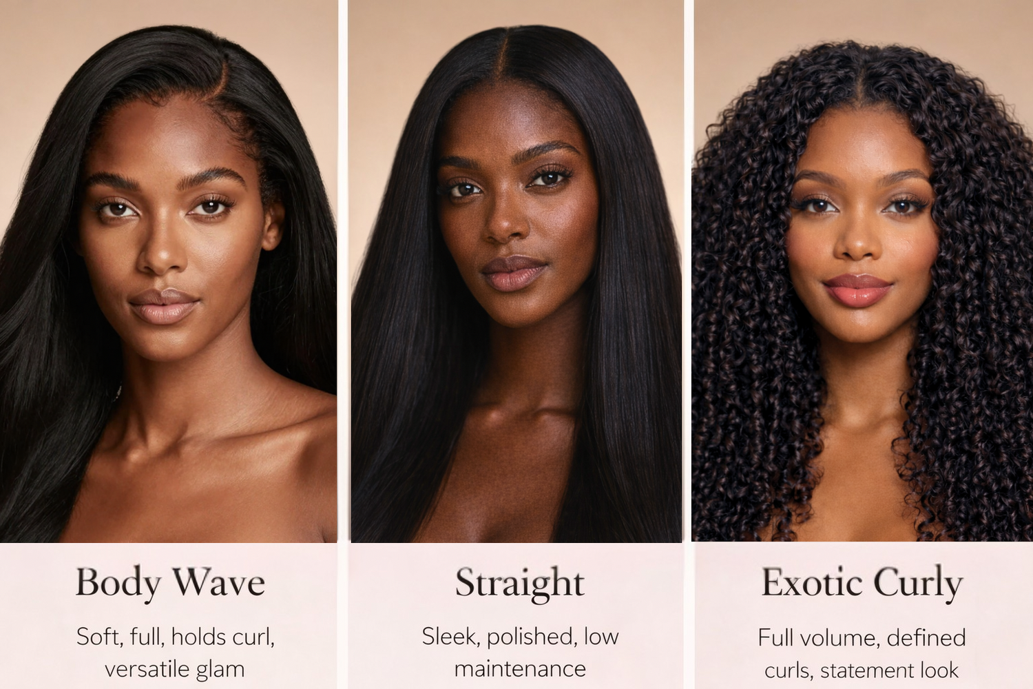 Premium 100% human hair bundles. Soft, full, long-lasting installs.